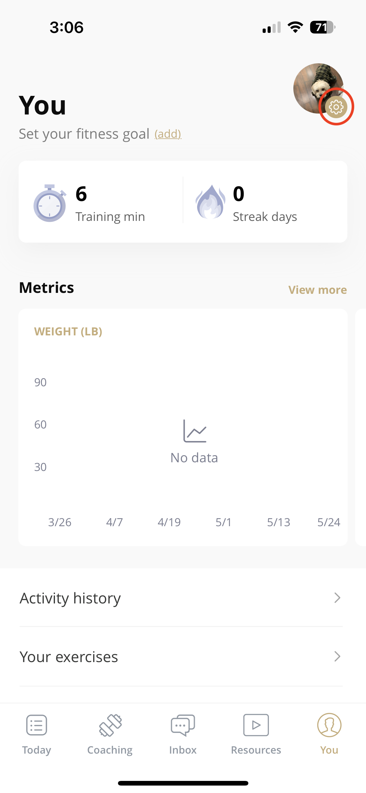1. Log in to your Bia account on the Client App and go to the You page. Access your Profile Settings by tapping on the avatar button in the top right corner of the screen.