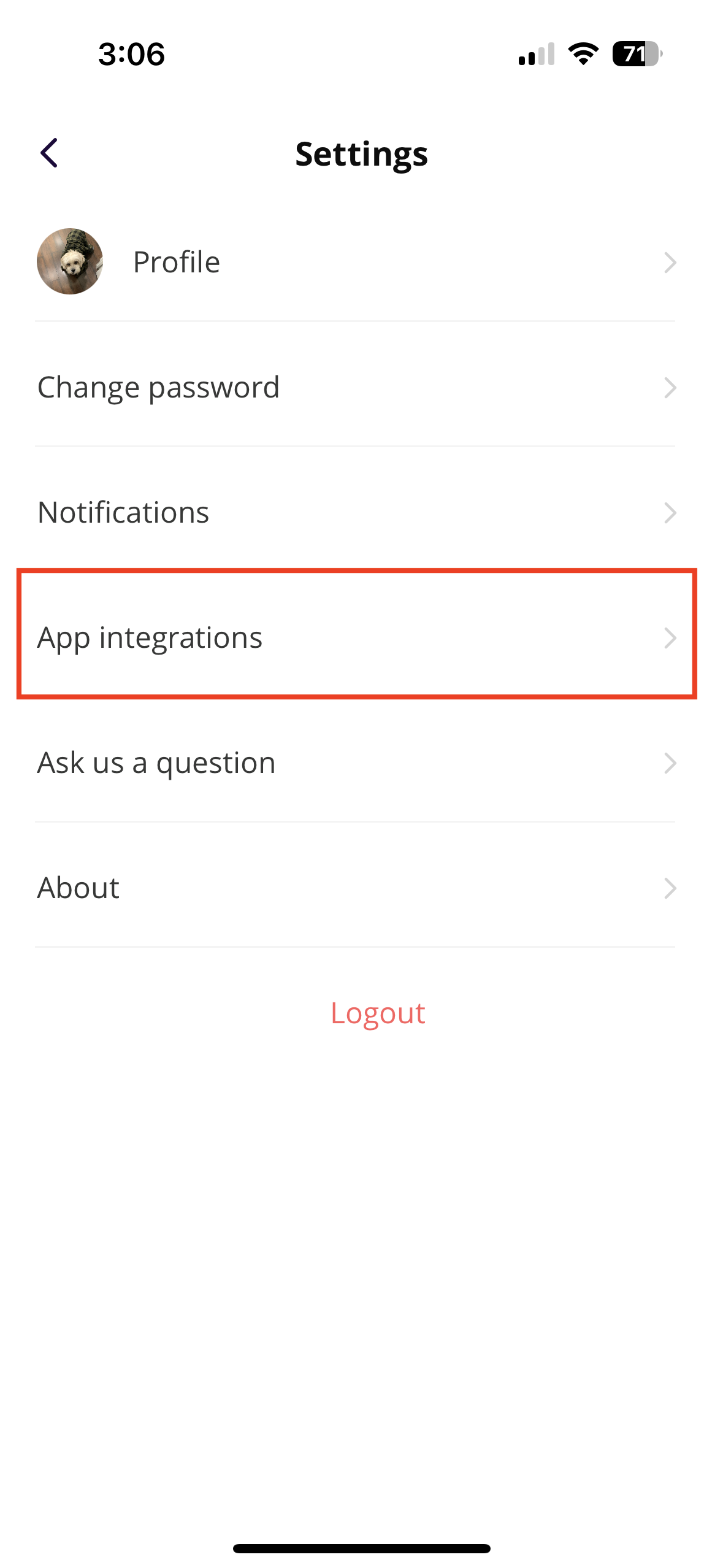 2. Within the Settings page, select App Integrations. Select Cronometer to start connecting.