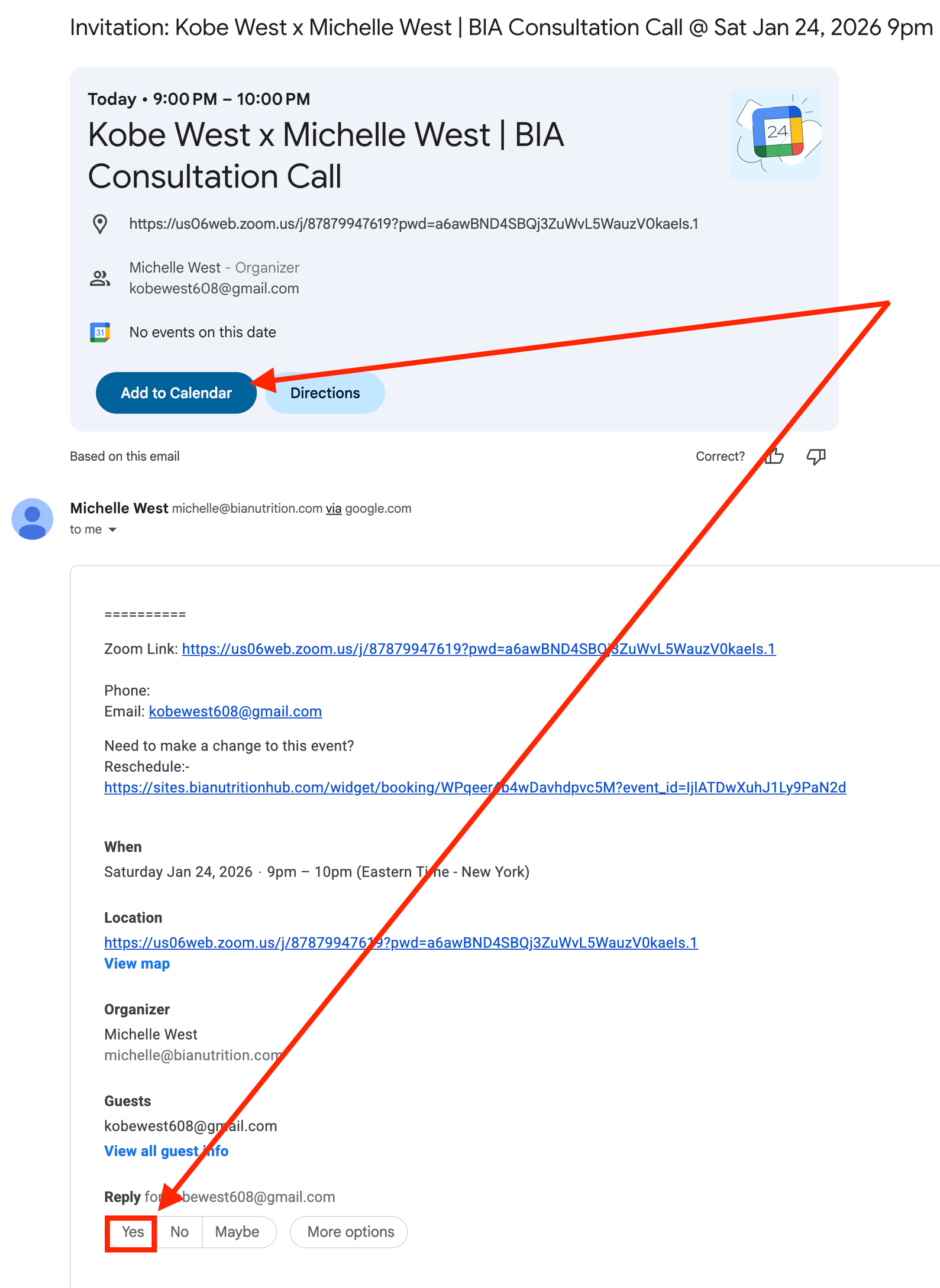 Click “Add to Calendar” and “Yes” to attend the call.